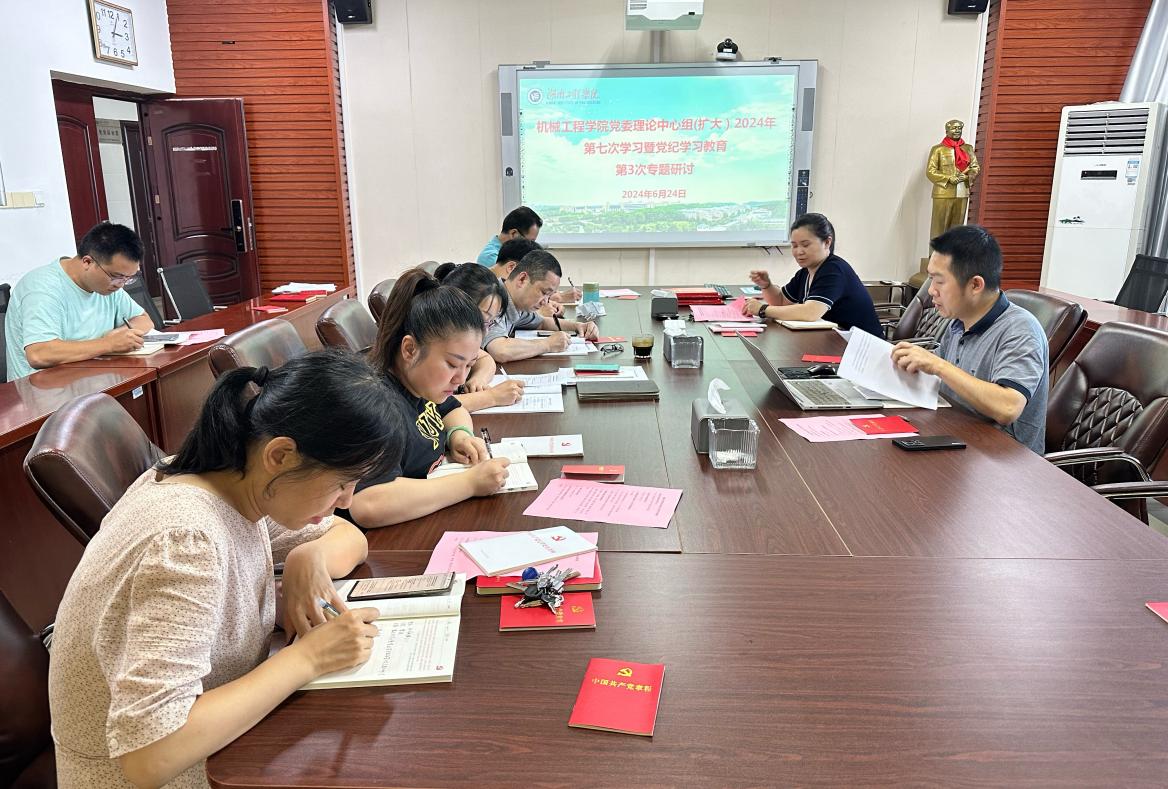 6月24日下午,威尼斯9499登录入口党委理论学习中心组(扩大)在机械楼311开展2024年第七次集中学习暨党纪学习教育第三次专题研讨。学院党委书记覃波主持学习。学院党委副书记、院长陈国强,学院党委理论学习中心组成员,专职组织员,支部书记参加学习。