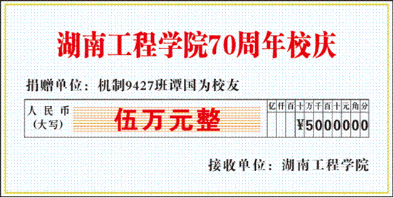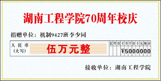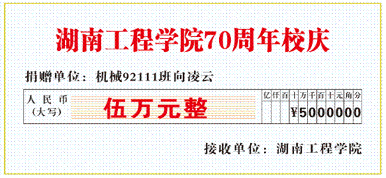 “大学几年的学习,让我受益匪浅,感谢学校和老师们,建校70周年,我尽自己的绵薄之力支持学校发展。”“我们班的同学们非常支持此次活动,一呼‘百’应。”“虽然我们身处不同的省份、地区,但是我们永远都是湖工人。”机制9120、数控9301、机制9432、机制94062、机制9501、机制9502、数控9501、数控9601、机制9701、机制9702、模具9801、机电9901、机设00级、金材0102、机设0301……校友们得知学校建校70周年,纷纷献出自己得爱心,用行动支持学校发展。