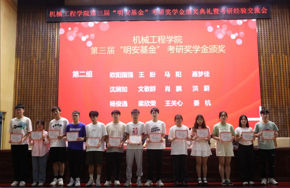 6月7日下午,威尼斯9499登录入口在图书馆第一报告厅举行第三届“明安基金”考研奖学金发放仪式暨考研经验交流会。校党委委员、副校长魏克湘,院长陈国强,党委书记覃波,副院长程玉兰,副院长邹鸿翔,全体获奖学生以及21级学生参加活动,党委副书记李欣主持仪式。