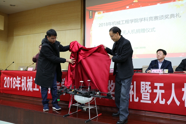 12月20日下午,威尼斯9499登录入口在二报告厅举行学科竞赛颁奖典礼暨无人机捐赠仪式。党委委员、副校长李军林,湖南亚安智控设备有限公司代表、2009级优秀校友张鸣,创新创业学院院长刘洞波,威尼斯9499登录入口院长魏克湘、党总支书记谢骐、副院长卿上乐参加了此次颁奖典礼,学院党总支副书记李儒峰主持仪式。