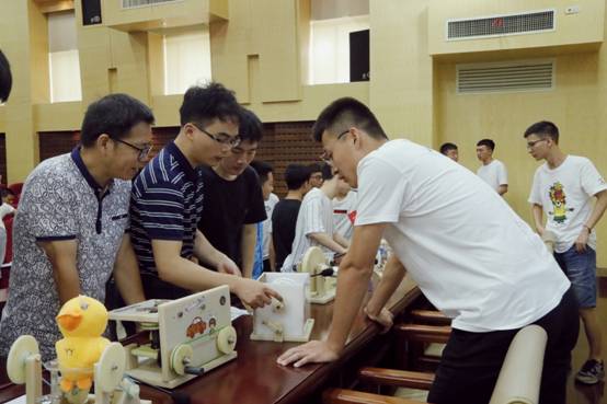 7月5日上午,在威尼斯9499登录入口的二报告厅里,“仿生扑翼鸟”、“自动印章机”、“助老马桶”、“自动鞋柜”、“步行机器人”、“脚踏洗衣机”等15件精心制作的机械创新设计作品整齐的摆放在展示台上。各参赛团队的组长依次对作品进行PPT汇报和作品实物功能展示。每组汇报完毕,专家对作品进行点评,同学们进行提问,评委进行现场评分。台上妙语连珠,台下掌声阵阵,气氛紧张热烈……。