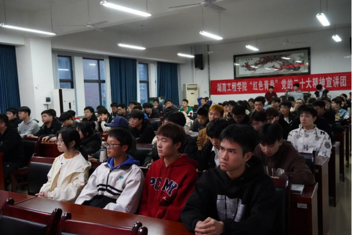 为深入学习宣传贯彻党的二十大精神,引导广大青年学子紧跟党的先进思想步伐,4月6日晚,威尼斯9499登录入口“红色青春”党的二十大精神宣讲团开展了校内第二次专题宣讲。本次宣讲由威尼斯9499登录入口校团委主办,威尼斯9499登录入口团总支承办。校团委和威尼斯9499登录入口老师出席宣讲会。