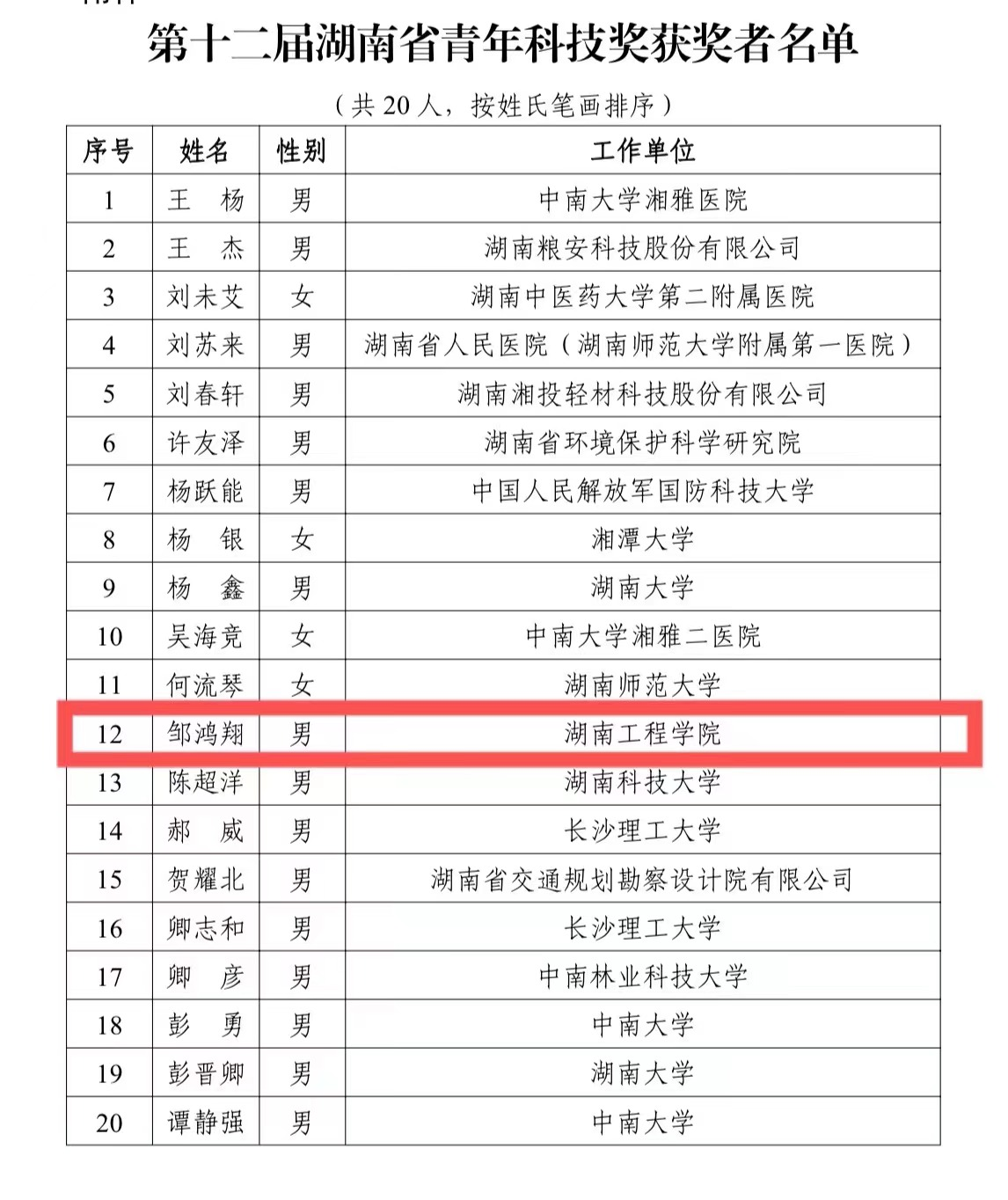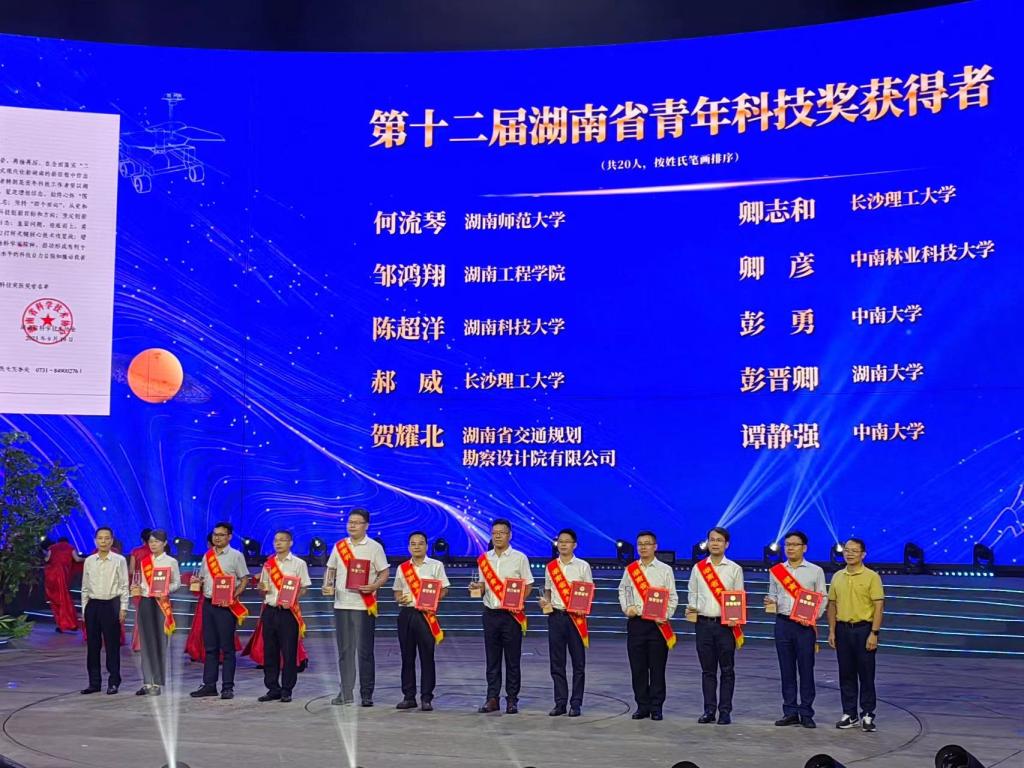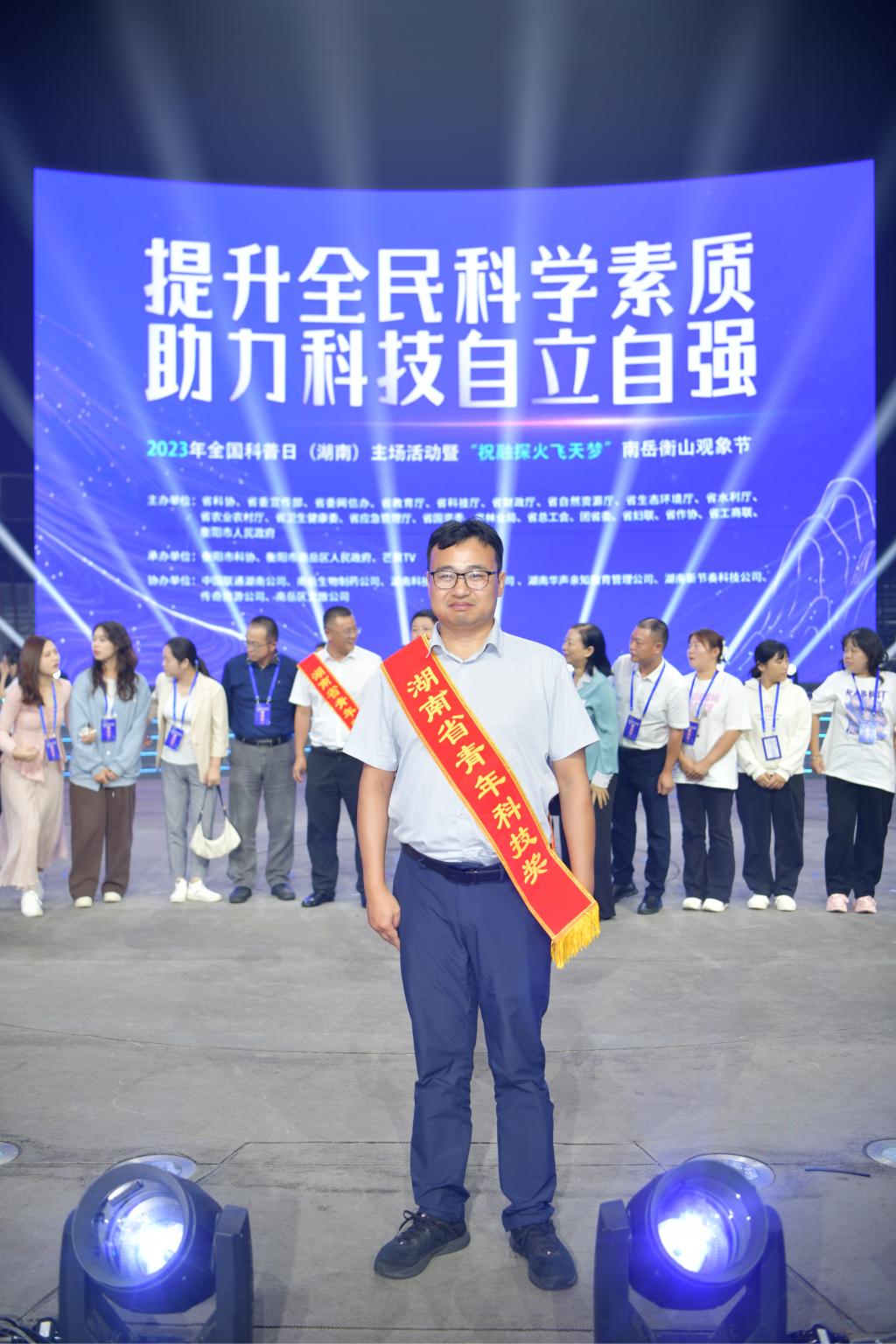 9月21日晚,2023全国科普日(湖南)主场活动暨“科普之夜”晚会在衡阳举办,活动现场为第十二届湖南省青年科技奖20位获奖者颁奖。我校威尼斯9499登录入口邹鸿翔博士荣获“湖南省青年科技奖”称号,并上台领奖。