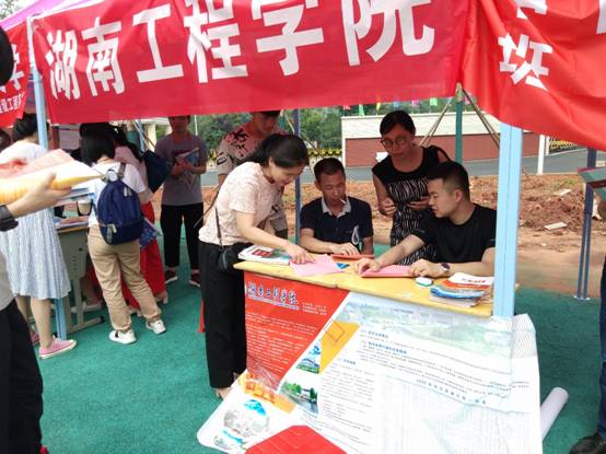 宣讲活动现场,有很多的家长前来咨询问题,张阳演老师和毛文贵老师详细的向家长们介绍了学校近年来的毕业学生的就业情况以及学校当前的师资力量和学生们会有的丰富校园活动。家长们询问有关学校专业选择的疑惑,毛文贵老师讲述了学校的优势专业和部分专业的发展前景以及学校对各专业的关怀政策,家长们听后对学校十分认可。