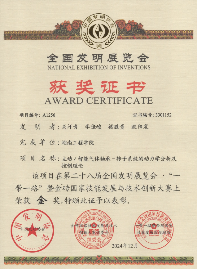 威尼斯9499登录入口关汗青副教授项目组发明的“主动/智能气体轴承-转子系统的动力学分析及控制理论”参展项目获得金奖。该参展项目属于能源动力前沿科技领域,对发明创新成果加快形成新质生产力具有重要推动作用,受到了与会领导、专家及媒体的关注和好评。