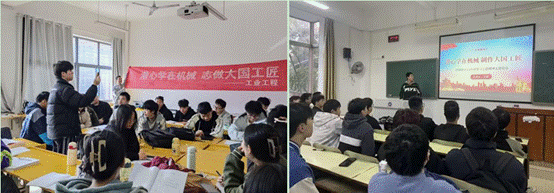 此次主题班会不仅开在教室,而且开在宿舍“一站式”学生服务社区、实验室、校史馆、工训中心和木鱼湖畔等场所。机械设计2301、2302班组织同学们前往校史馆,了解学校的发展历程和优秀前辈为教学不断探索、精益求精的精神品质,种下“大国工匠”的种子。在滨江10栋“一站式”学生服务社区,工业工程2303班班长讲述杰出校友的工匠故事,向同学们宣传可亲可敬、奋斗青春的榜样和标杆,激励学生继承和发扬劳模精神、劳动精神和工匠精神。材料成型2204班长带领班级参观了智创实验室,通过向同学们介绍实验室的仪器、制作装置和科创作品,激发科技兴趣。机械设计2102班参观了实验室后在木鱼湖畔交流畅谈,表示要将工匠精神融于日常专业学习中。