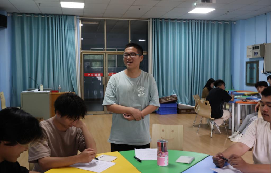在“学习现状检核”环节,学生通过填写“学习现状调查表”,与小组成员分享自己的学习现状,分析导致学业问题的原因,小组成员共同探讨改善路径。活动进入“突破学习困境”环节,在这一环节中,小组组员积极讨论、相互鼓励,为小组内学业上遇到问题的同学出谋划策。本次活动,特别设置“学霸来帮忙”环节,邀请材料控制2303班左陈杰、机器人工程2304班熊定豪和机械设计2306班曾凡文三位学生分享自己的学习方法、经验和心得。